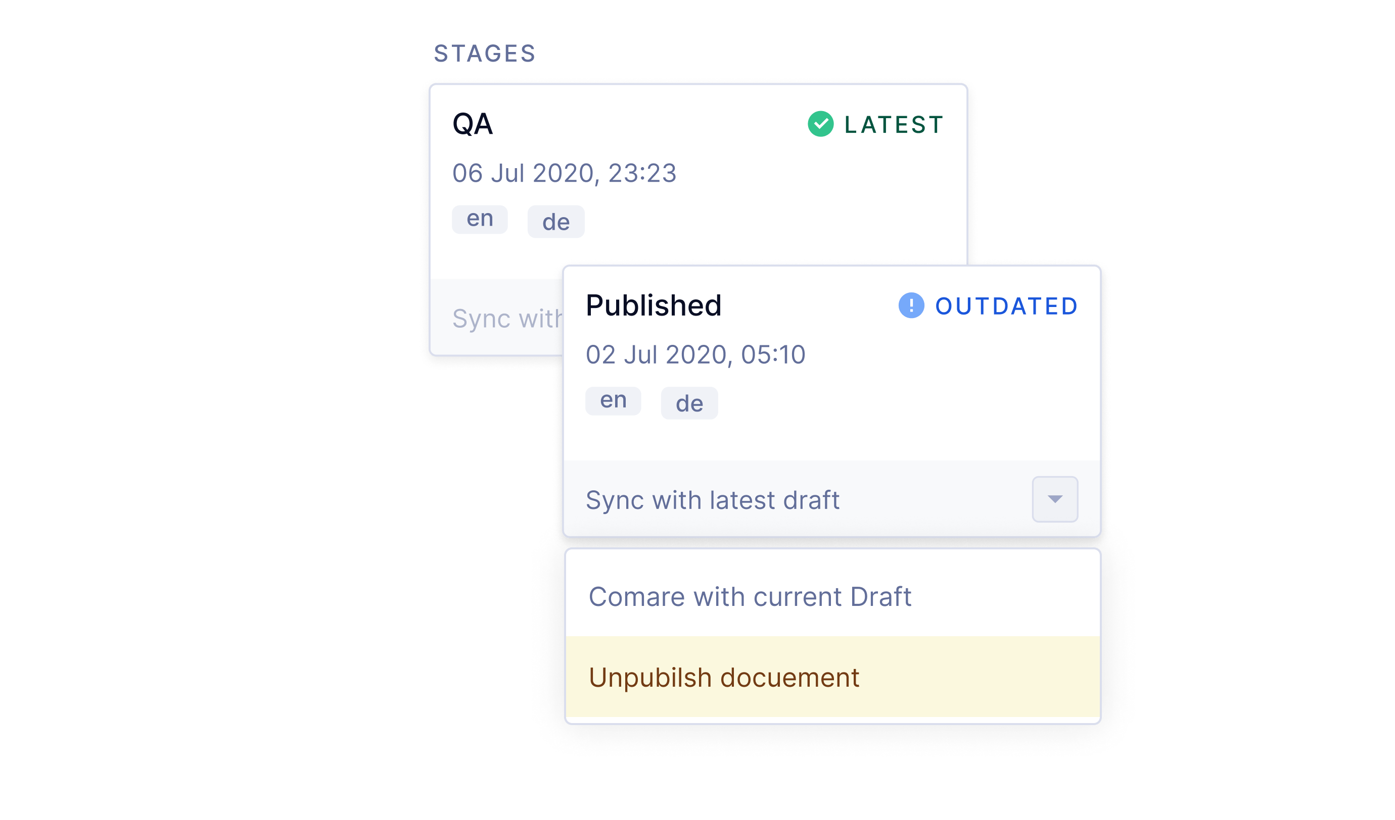 Keep complete control over when and how content is published with the ability to save to drafts before making anything public, developers can also set up granular and customized workflows to ensure nothing is pushed live without proper vetting.