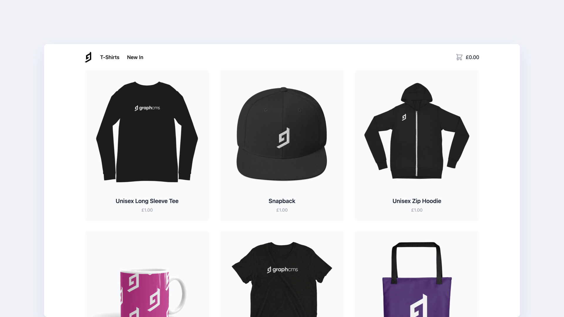The Hygraph eCommerce Storefront starter is a simple reference application focused on showcasing a product inventory, illustrating how to build an eCommerce shop with a Headless CMS. Built using Next.js, Stripe, and TailwindCSS, the Hygraph eCommerce Storefront lets you get up and running with your own project and frontend.